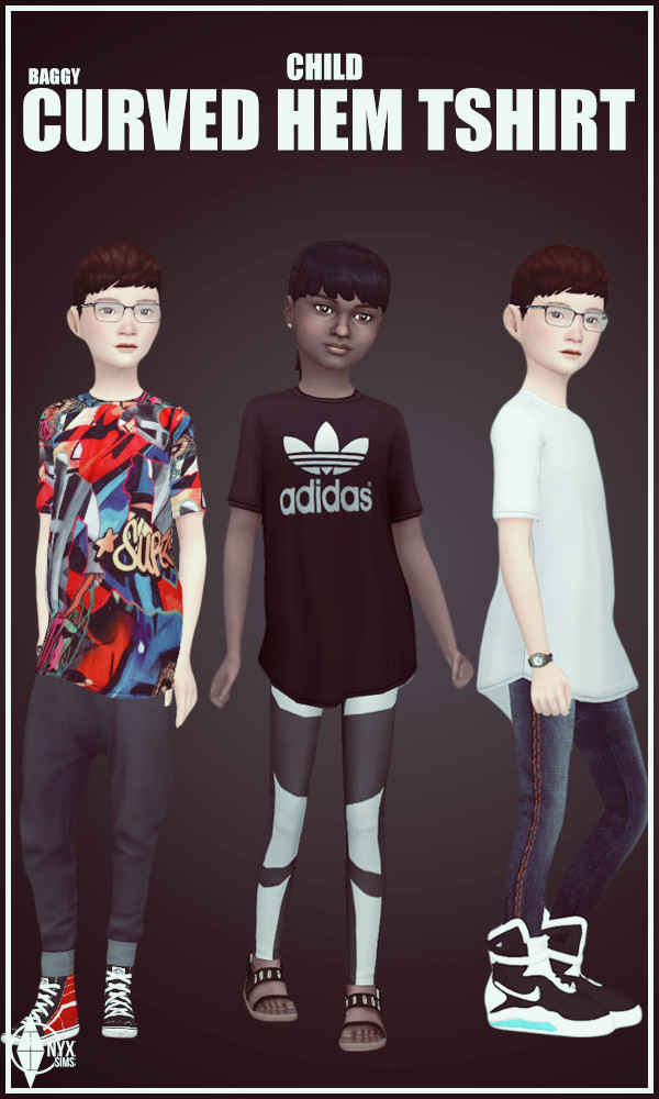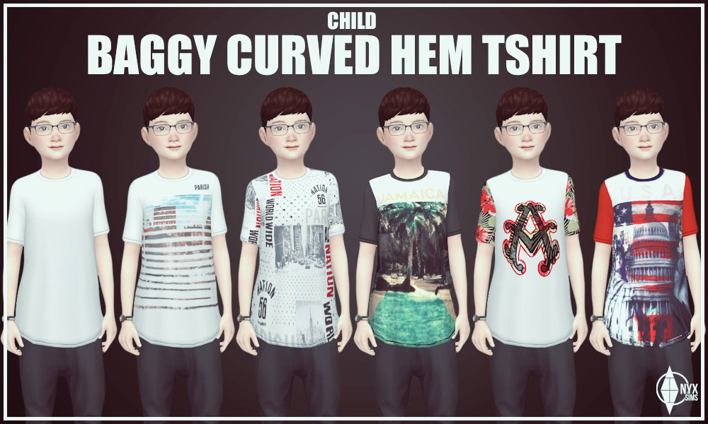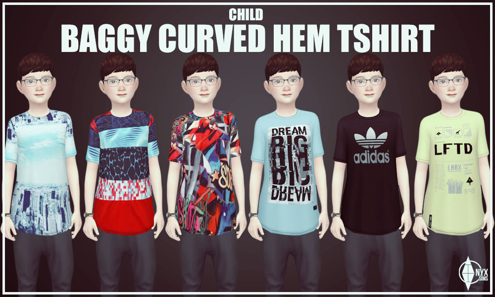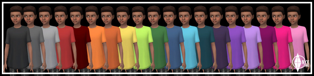 Just another baggy t-shirt for the kids. This one is available for girls as well in all 30 swatch options (12 graphic print/ 18 solid colors). Feel free to recolor this mesh if you’d like, just remember not to include the original mesh and link back to this thread in case of updates.