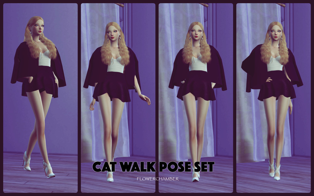 Hello All, this is my new pose set - CAT WALK request by starlord-simsIt includes:CAS Pose -> please select “MusicLover Trait”INGAME - > please let your sim do “push up” actionNote:There were 2 more poses that I did not show in the pics overview above, hope these secret two poses will win you
