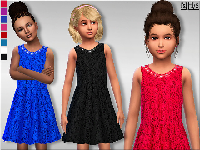 -a sweet little lace dress for child female sims, with flower attachments with diamond centre and elasticated waist band