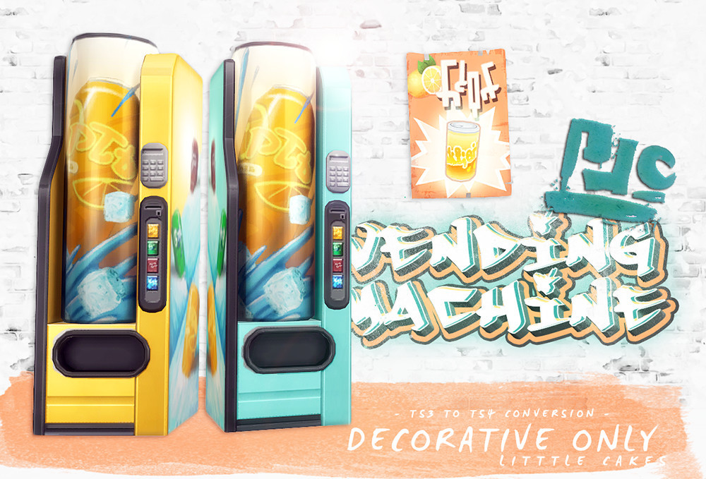 Some random CCs for you! A decorative vending machine from TS3 and some simlish food posters (including a framed version for you fancies).